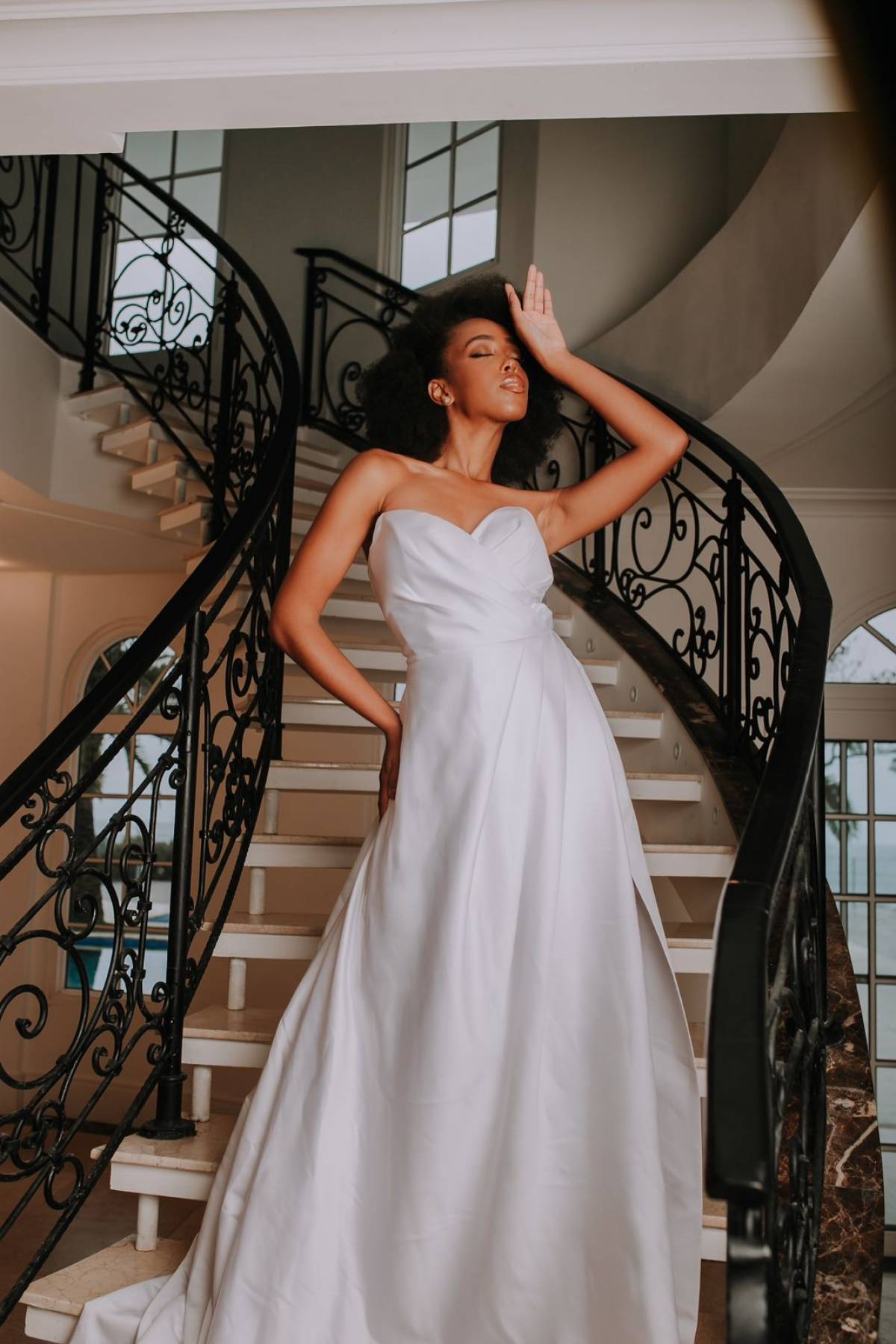 Descrição:Vestido longo de noiva, Branco, tomara que caia, alfaiataria com fenda, opção peplum no ombro