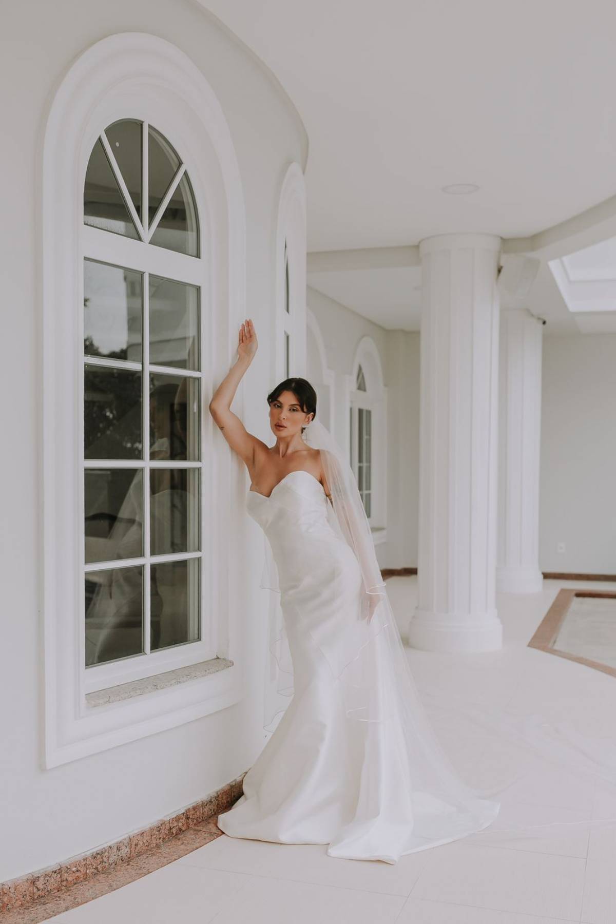 Descrição:Vestido longo noiva, inteiro de alfaiataria branco, sereia