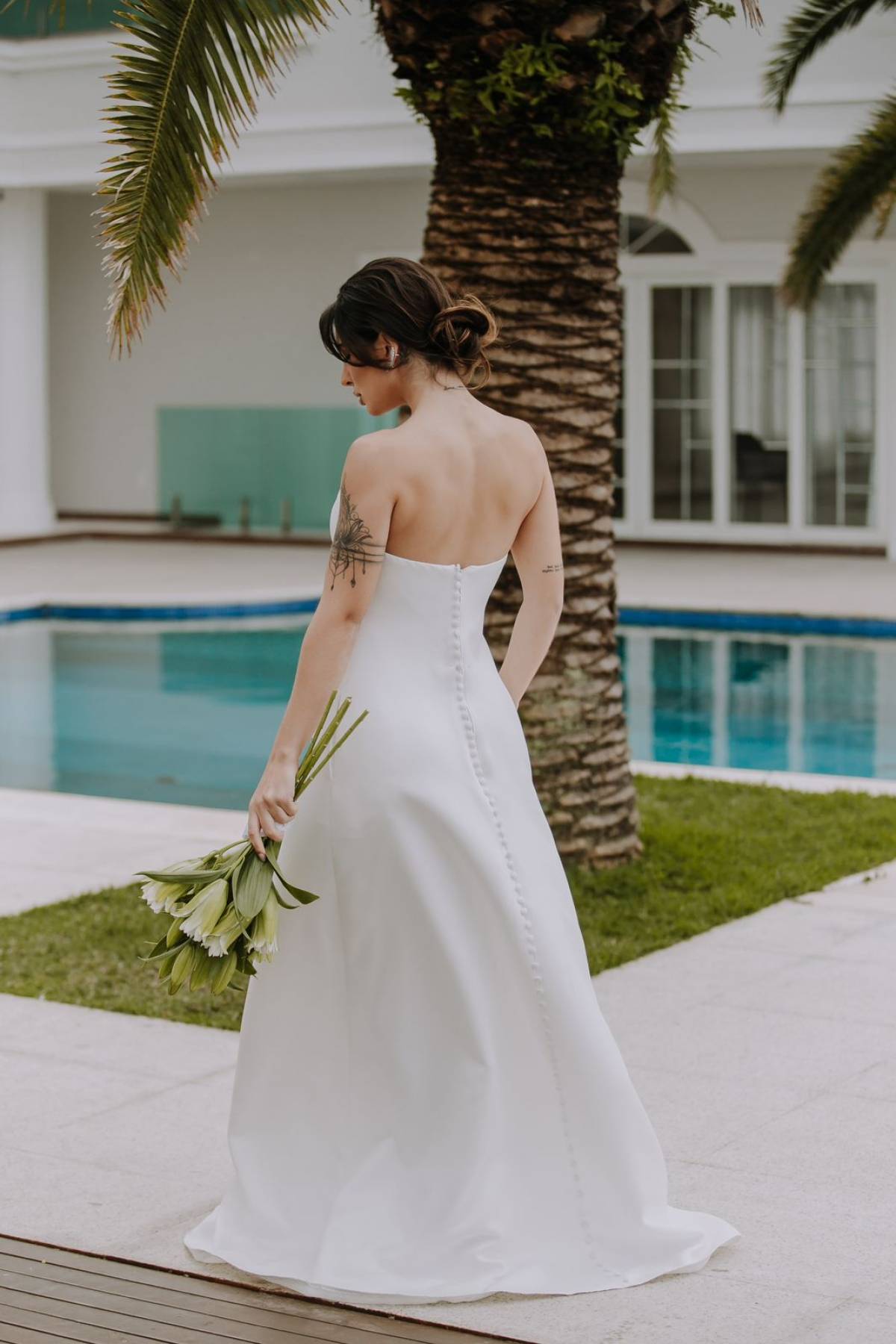 Descrição:Vestido de noiva assinatura My Closett, saia ampla, costas inteira de botão