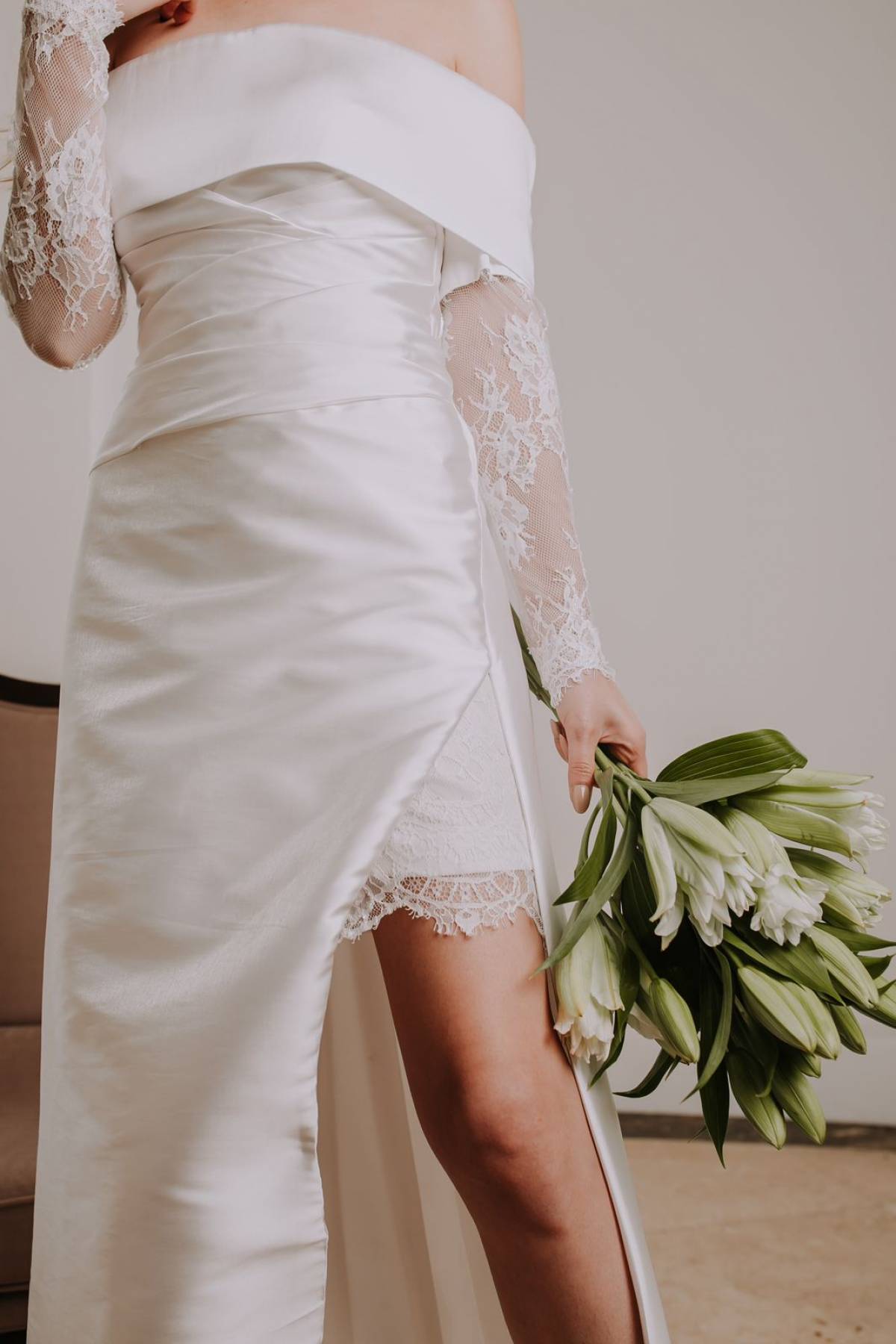 Descrição:Vestido de noiva SIGNATURE, vestido longo liso, sereia alfaiataria, fenda lateral