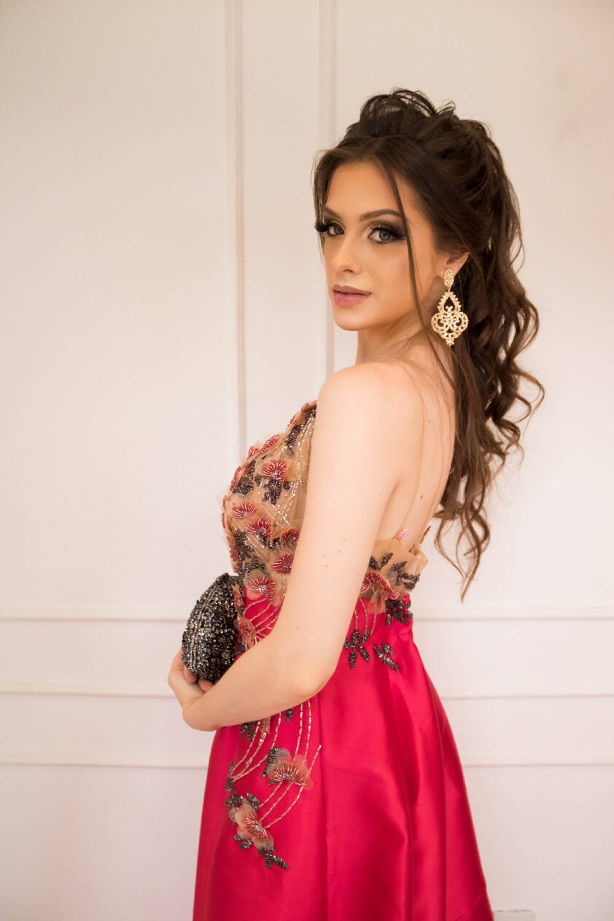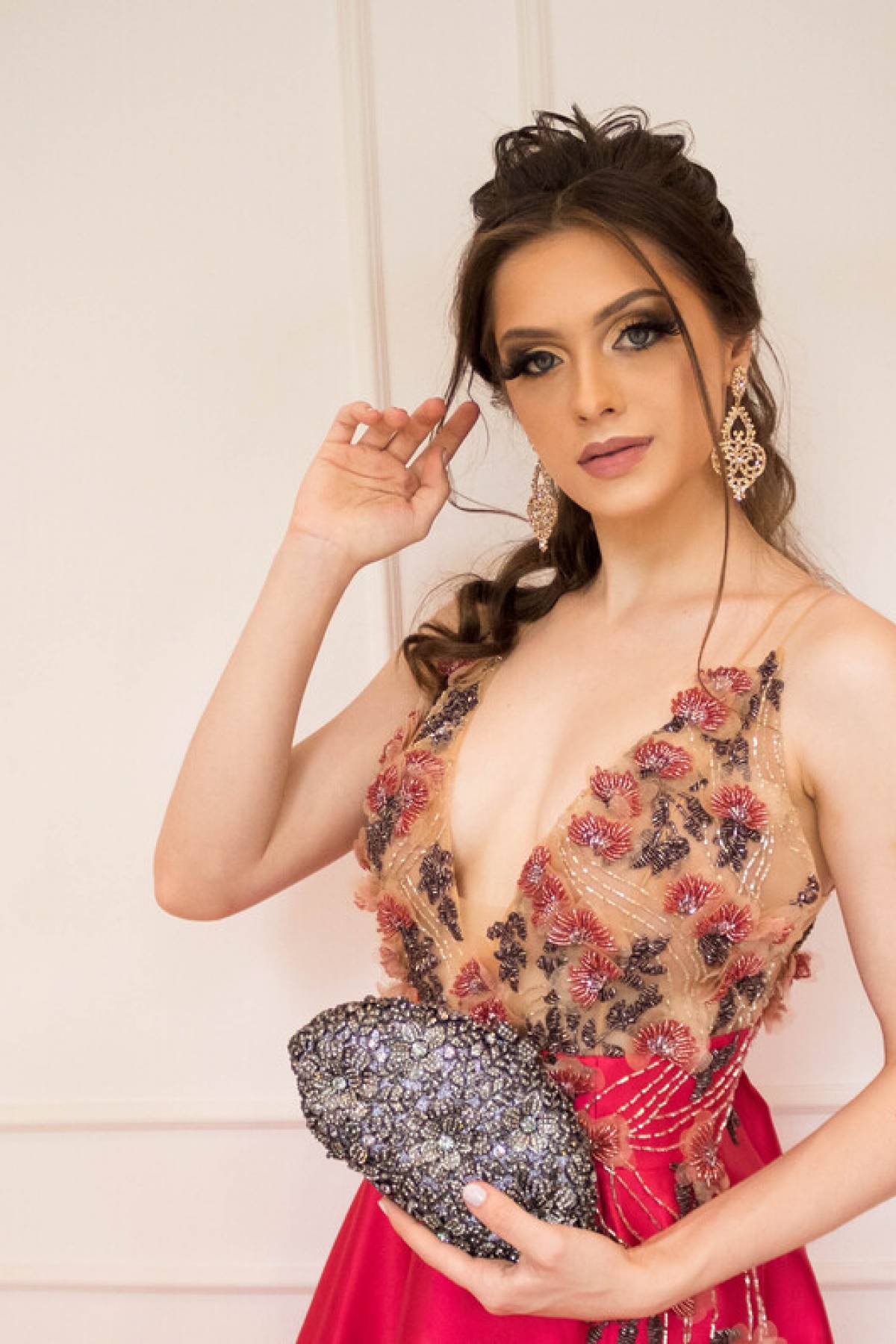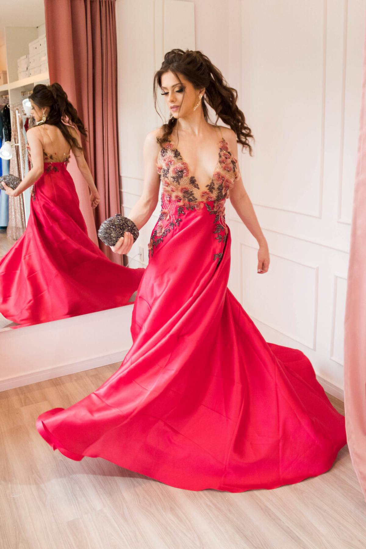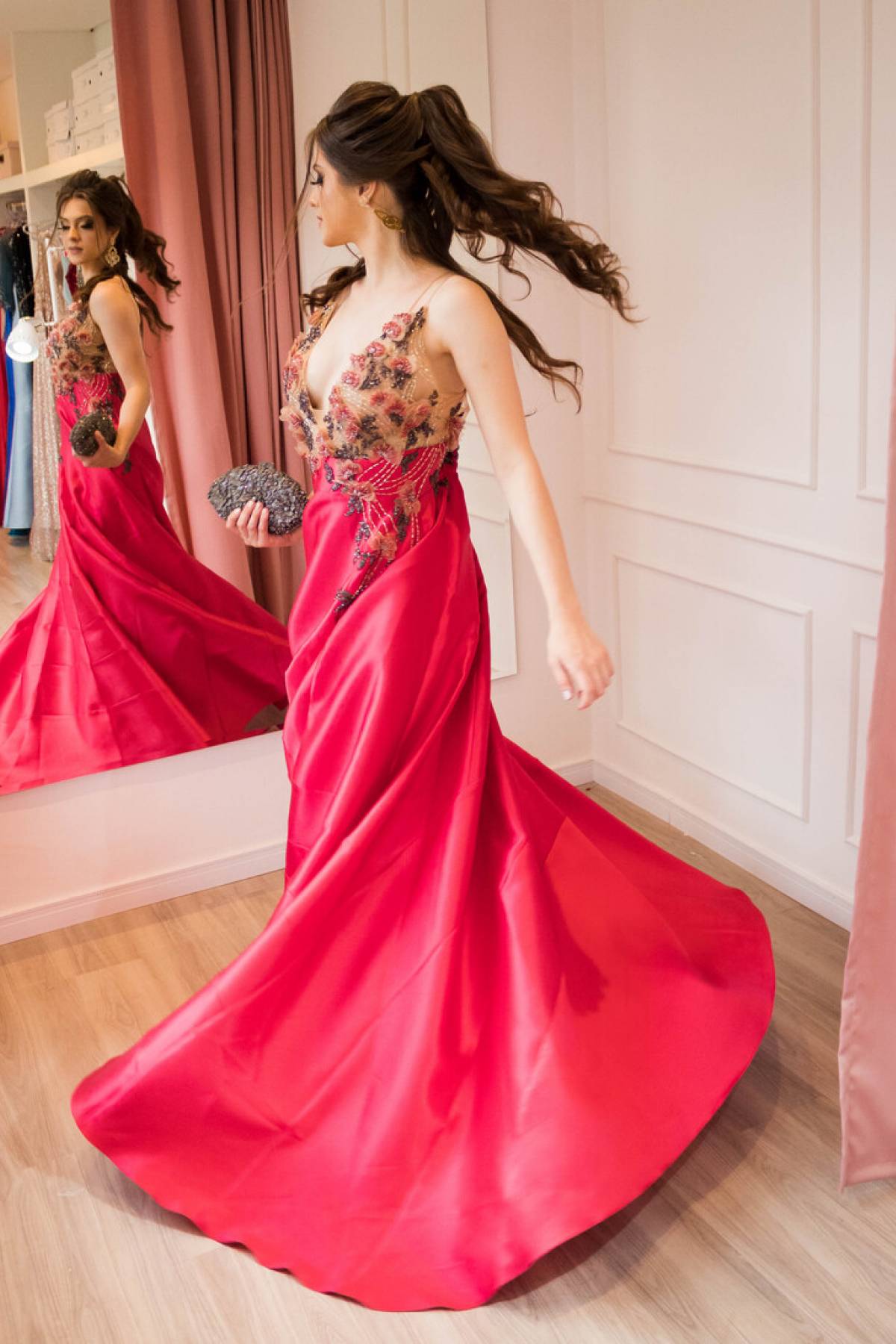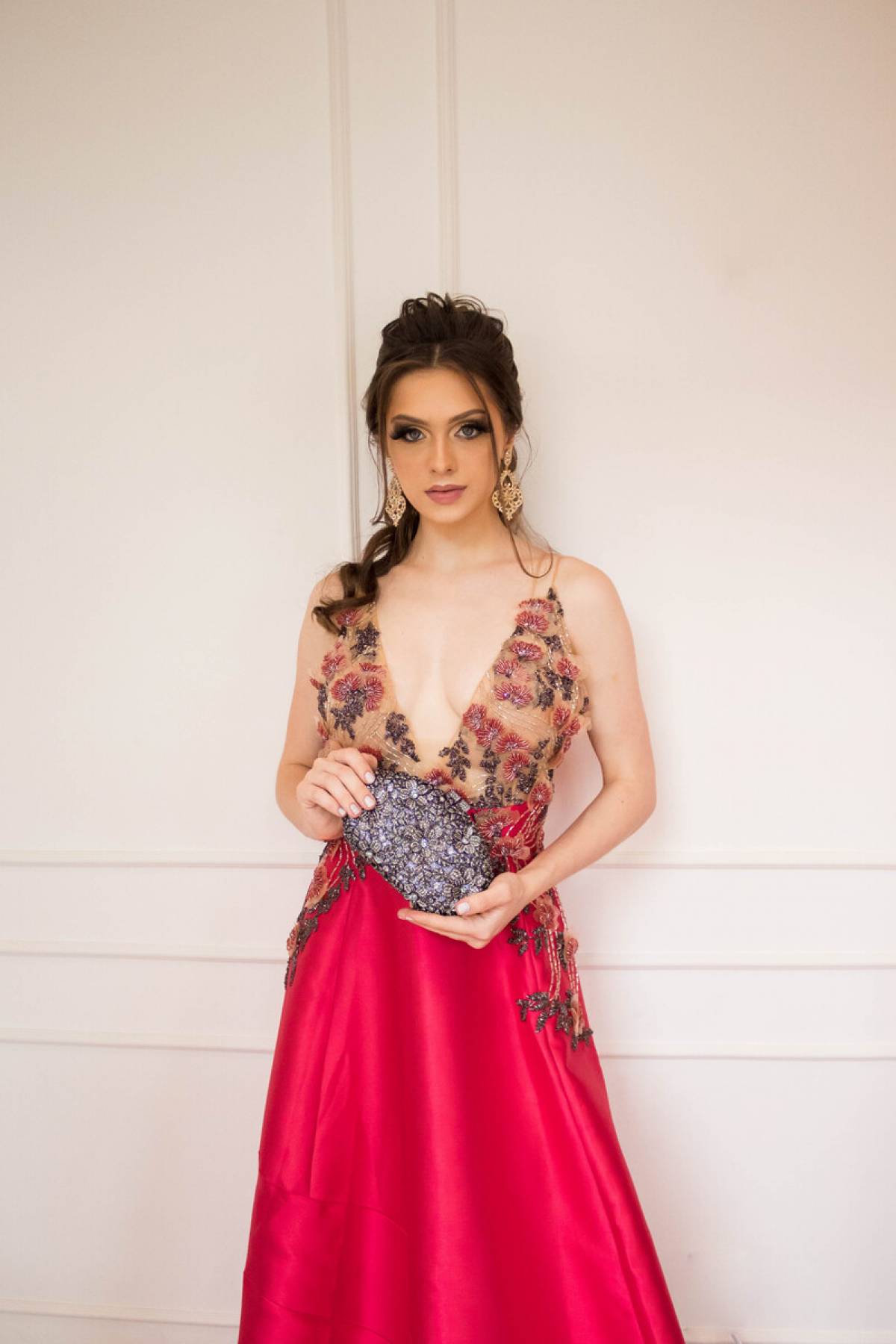 vestido longo semi bordado em chumbo com flores em 3D, em alfaiataria com bolso