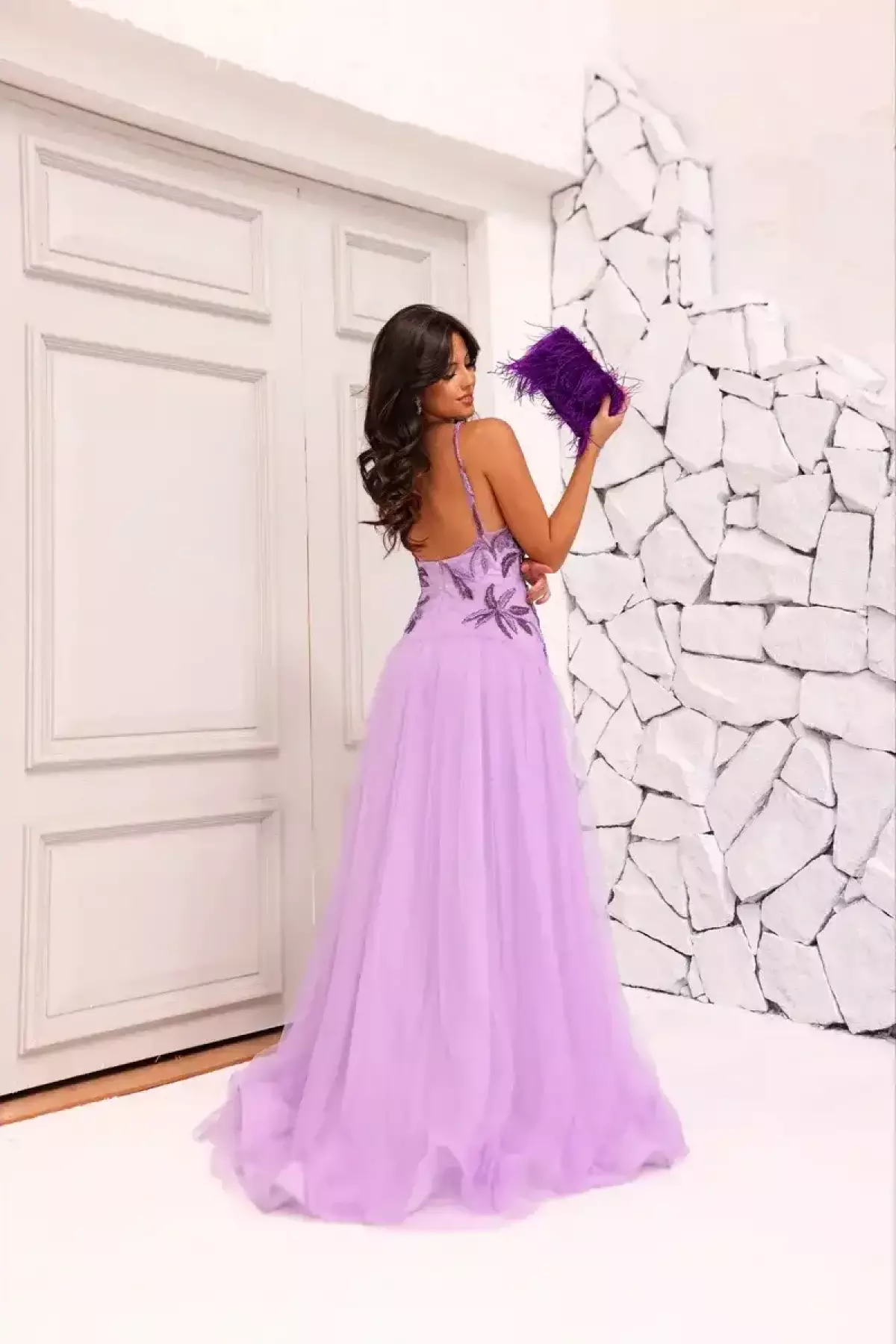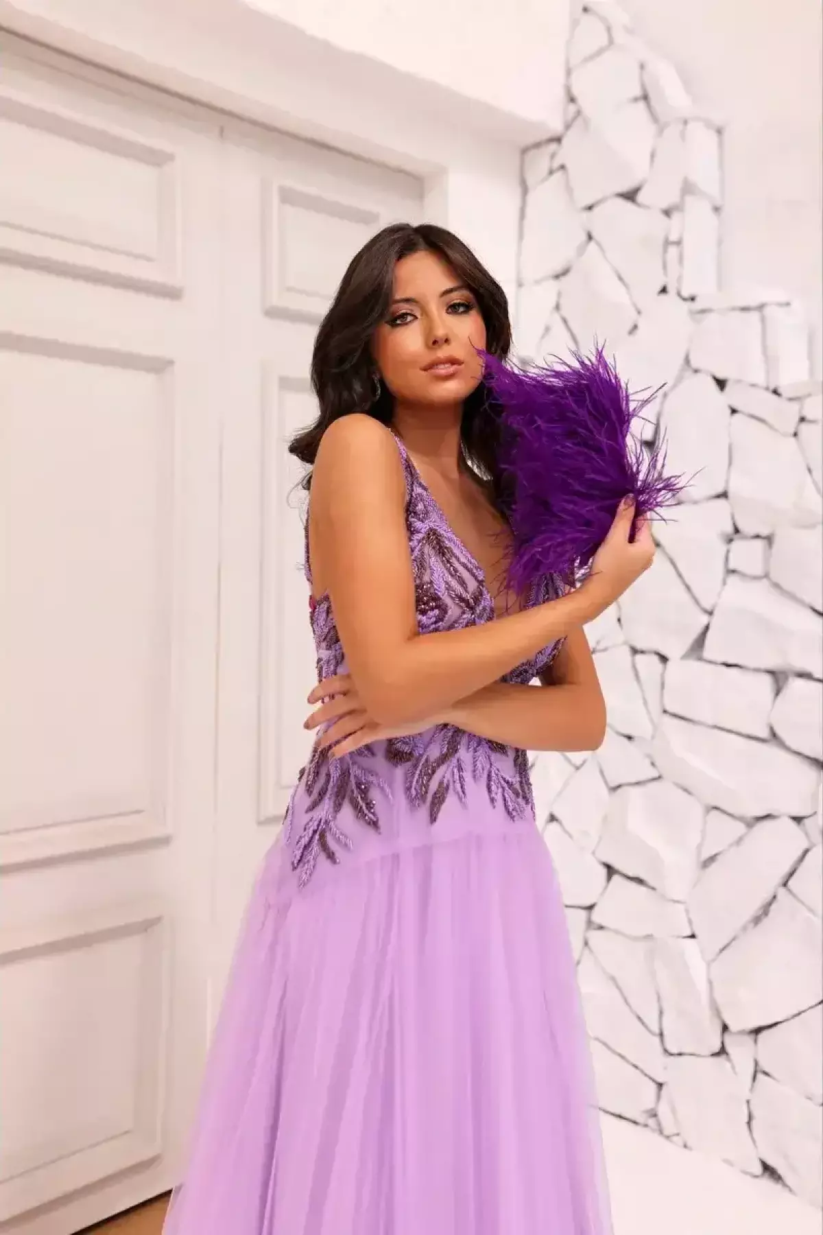 Descrição:Vestido lilás/lavanda com bordado no busto e saia em tule.