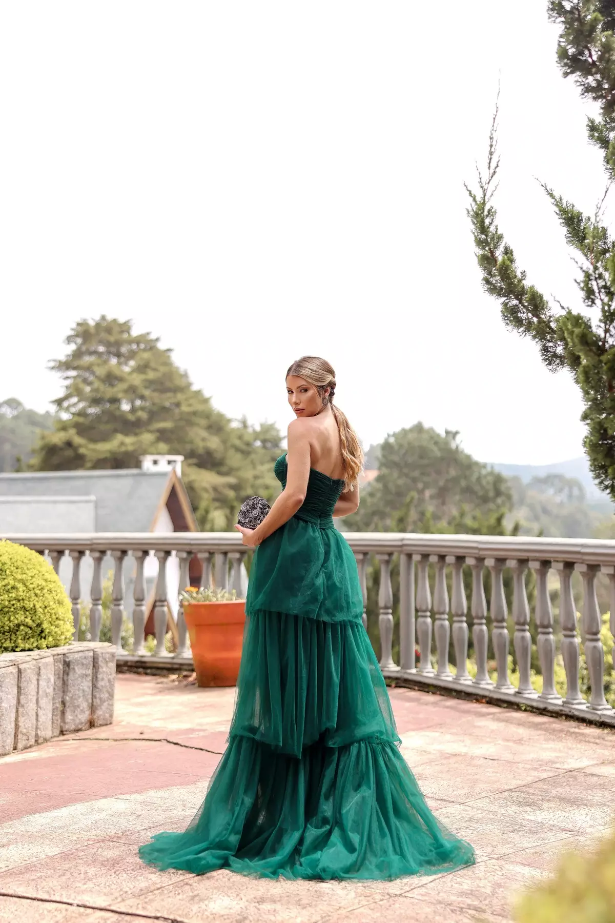 Descrição:Verde de corpete com saia em tule babado.