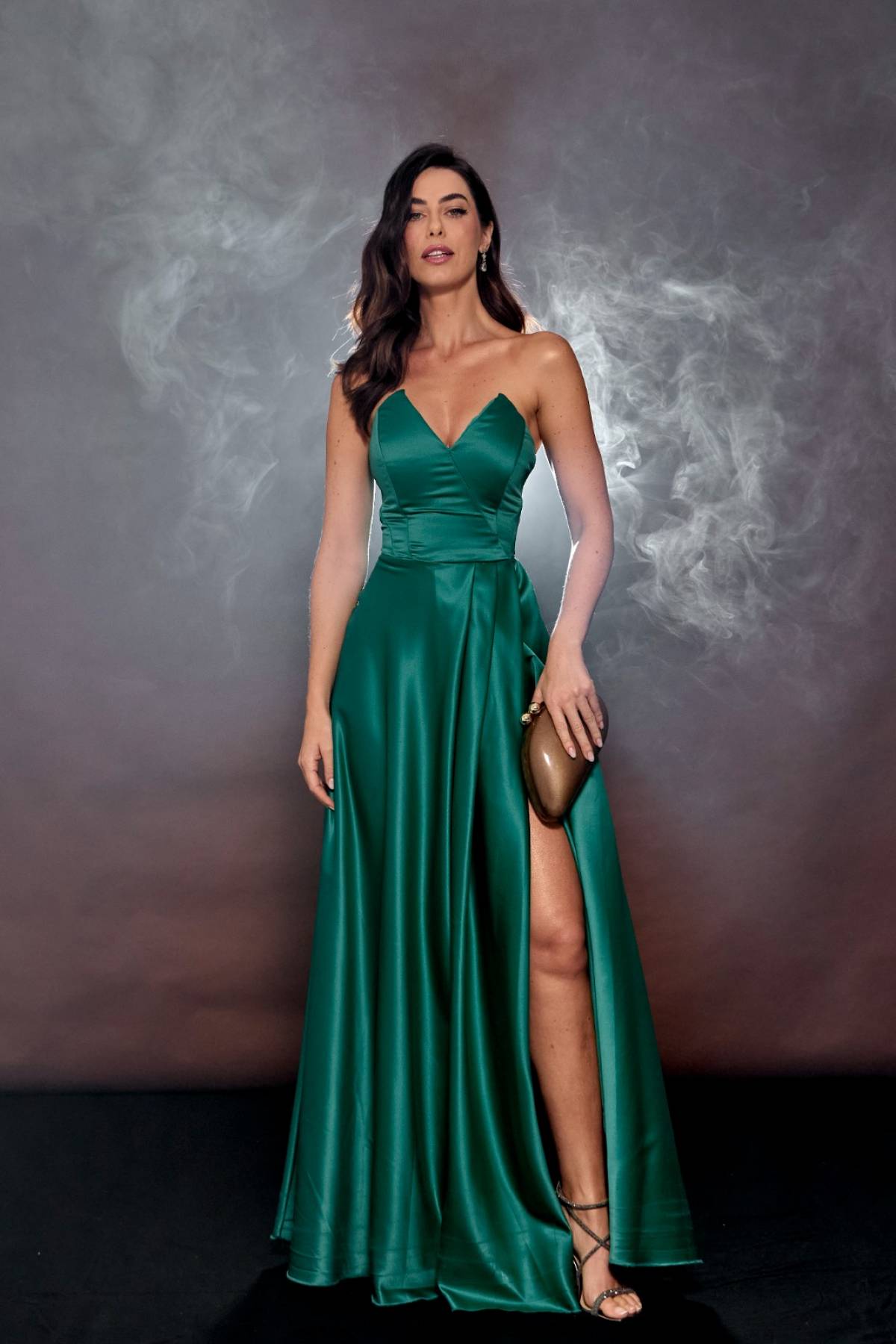 Descrição:Vestido todo de glitter rose, busto corpete, saia com fenda, cinto opcional