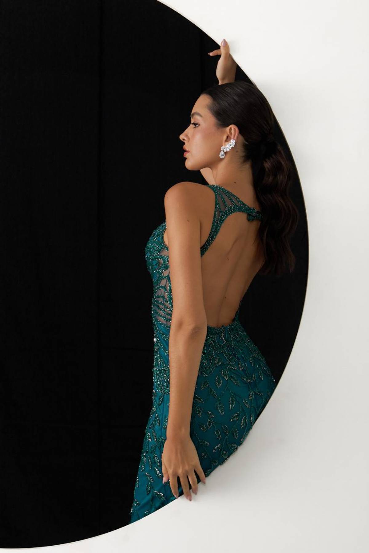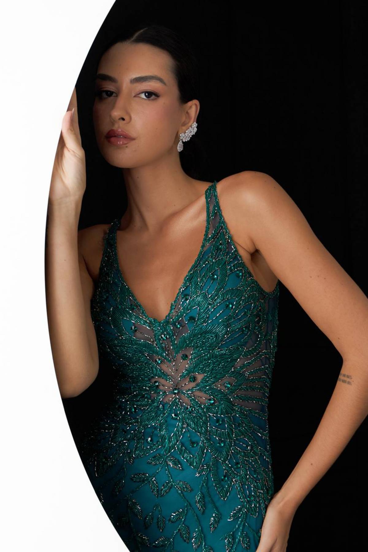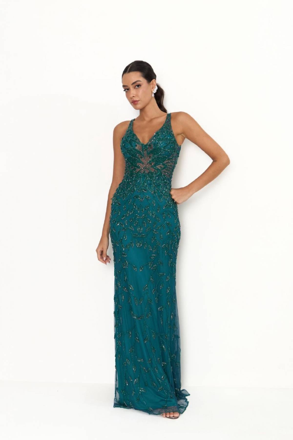 Descrição:Vestido verde turquesa/ petróleo sereia pedraria pavão