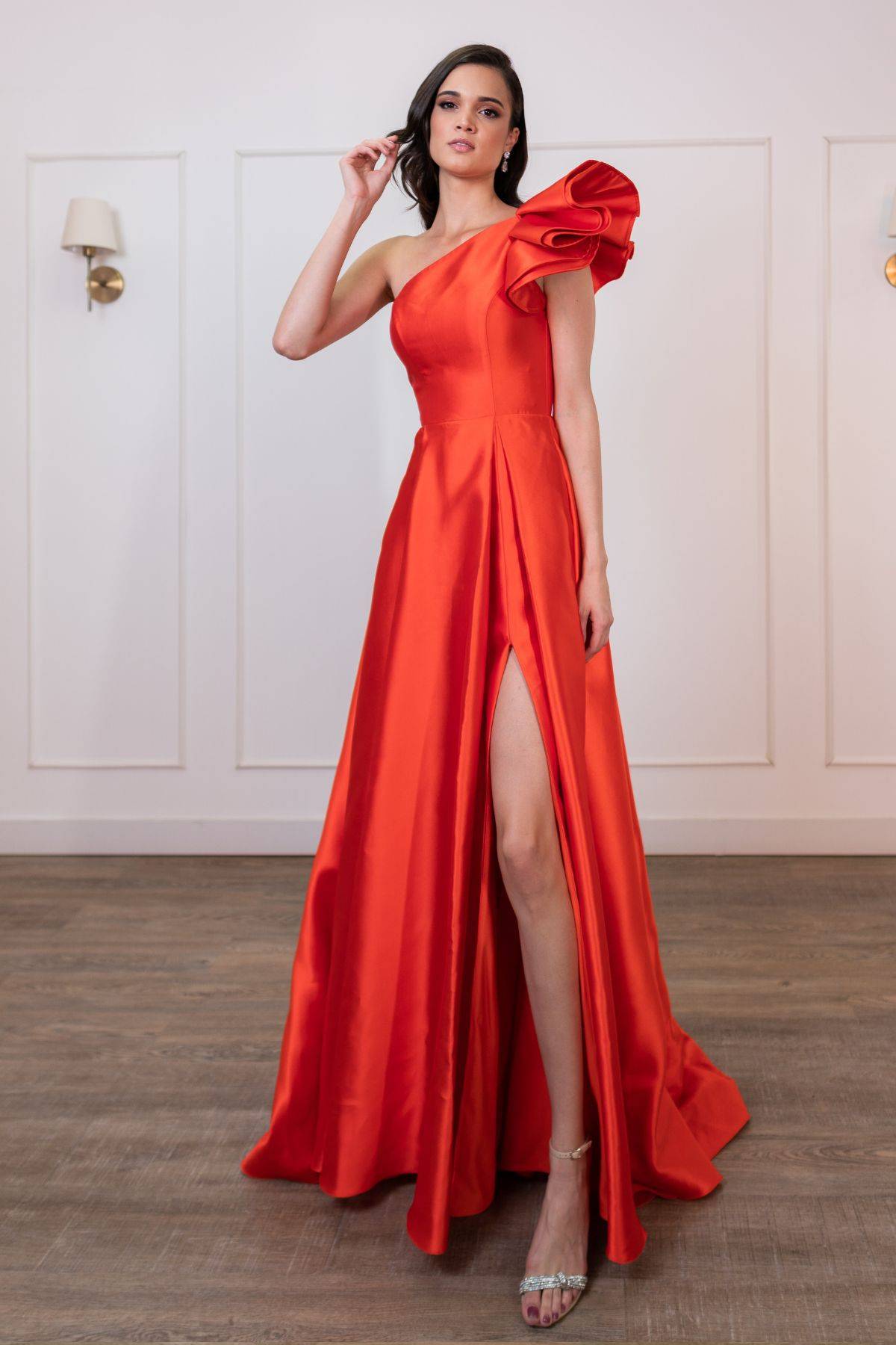 Vestido alfaiataria em zibeline fúcsia, com decote coração e manga ombro a ombro.