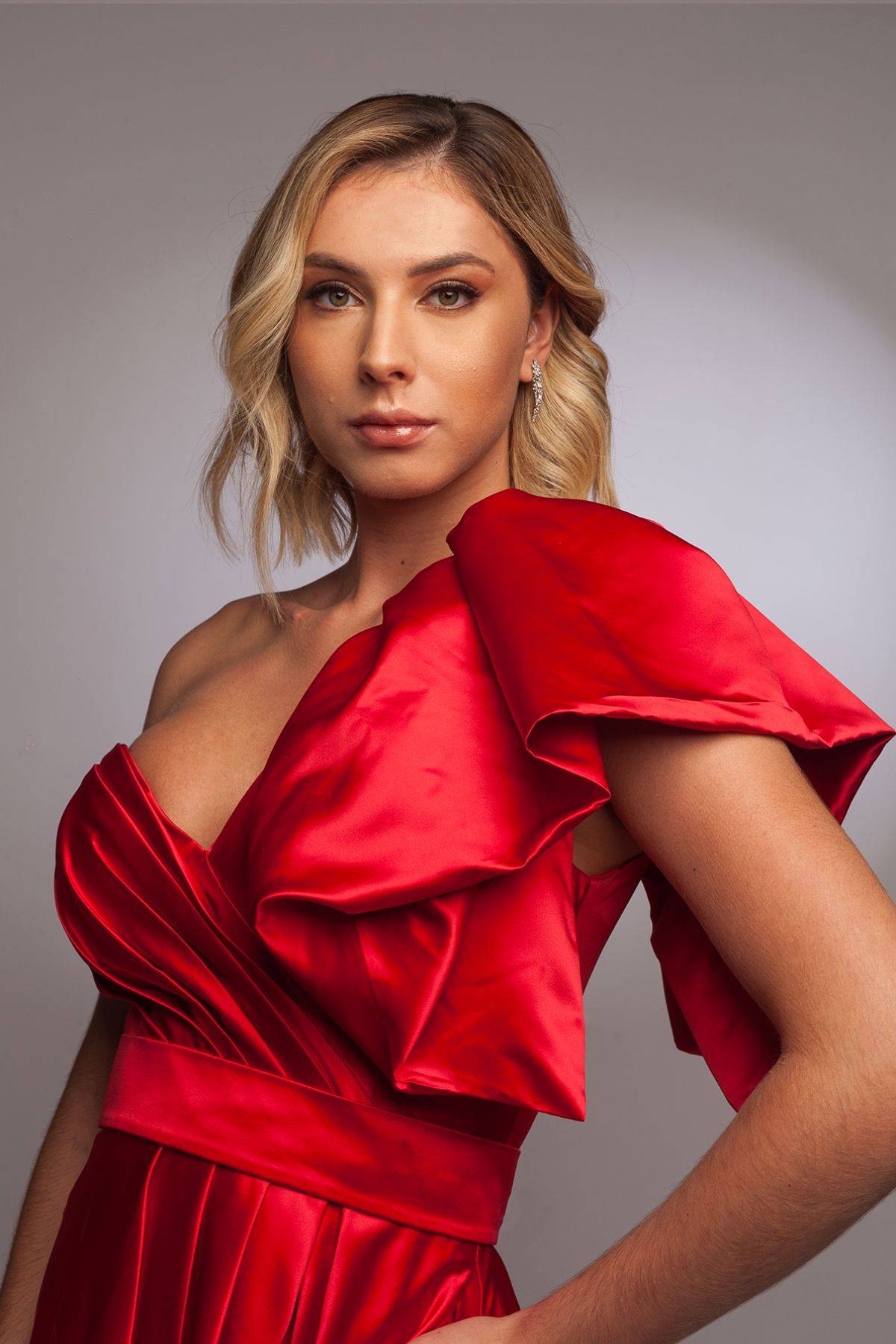 Descrição:Vestido inteiro bordado prata, um ombro só, com recorte no busto.