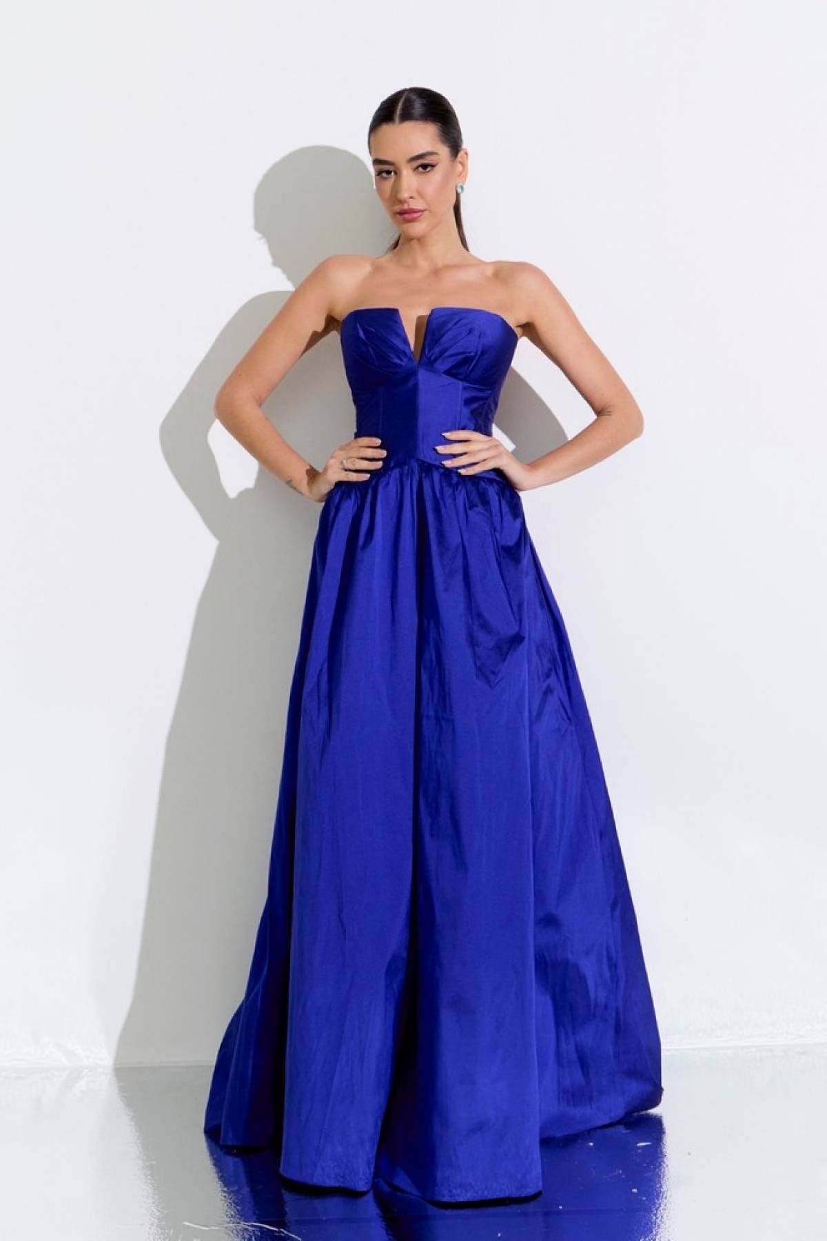 Descrição:Vestido verde tafetá corpete um ombro só com laço no ombro e saia fluida