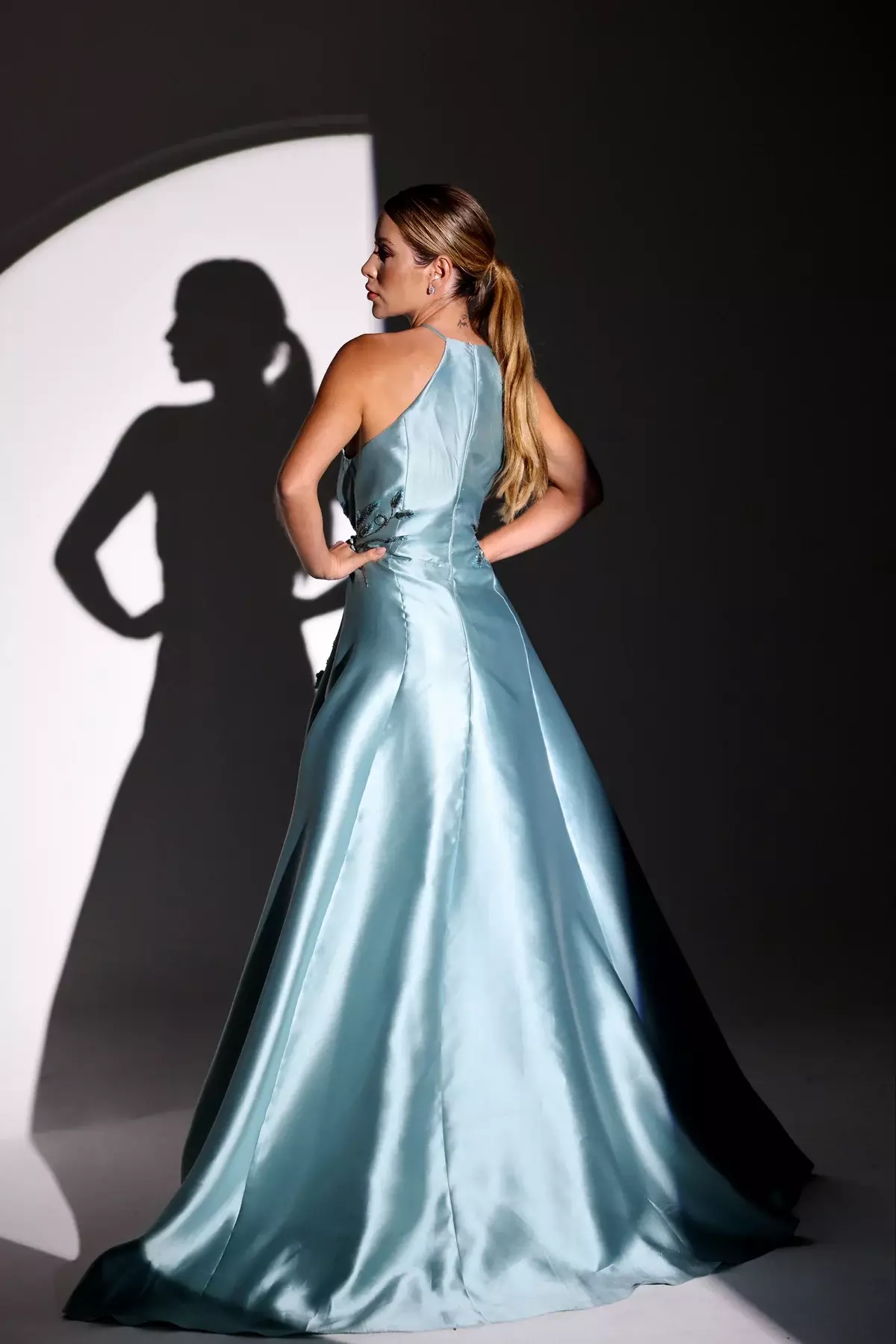 Descrição:Vestido longo em zibeline na cor azul claro/serenity, com busto bordado e saia em evasê