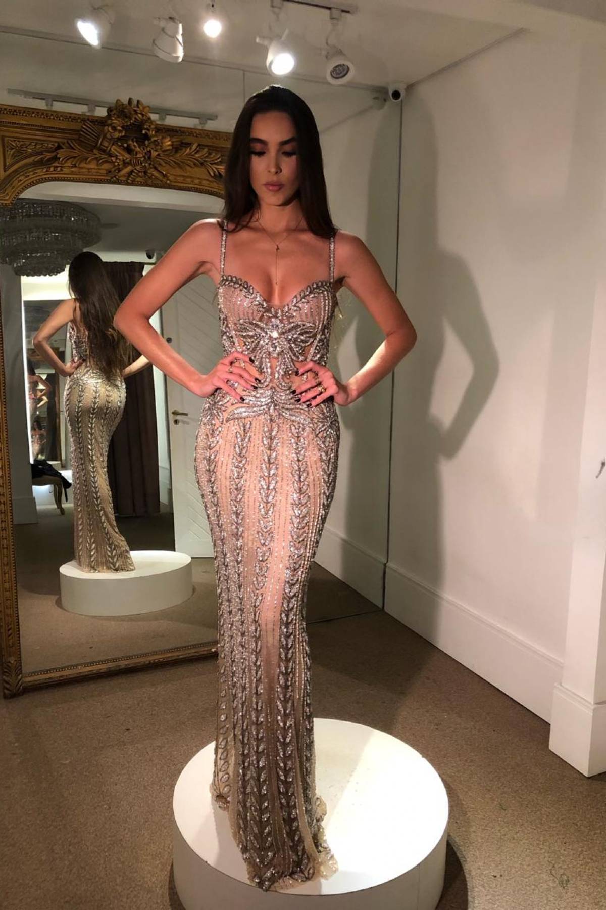 Descrição:Vestido longo com fundo em renda e tule nude, bordado em cristais prata e chumbo, com busto em corselet.