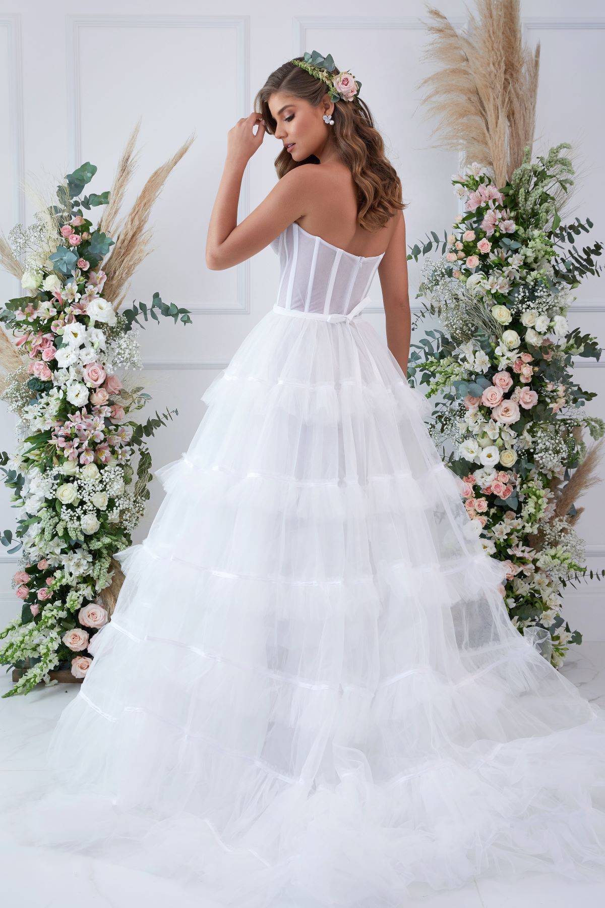 Descrição:Vestido longo com corpete glitterizado, tomara que caia, saia de tule com camadas.