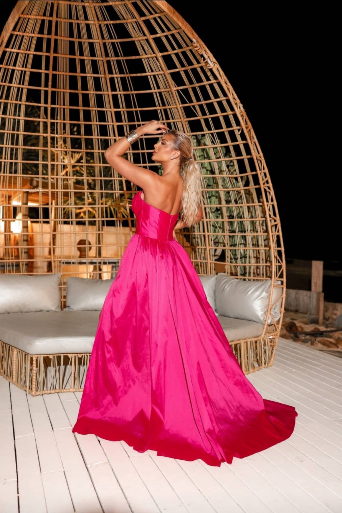 Descrição:Vestido longo, alfaiataria, tomara que caia, drapeado no busto, fenda.