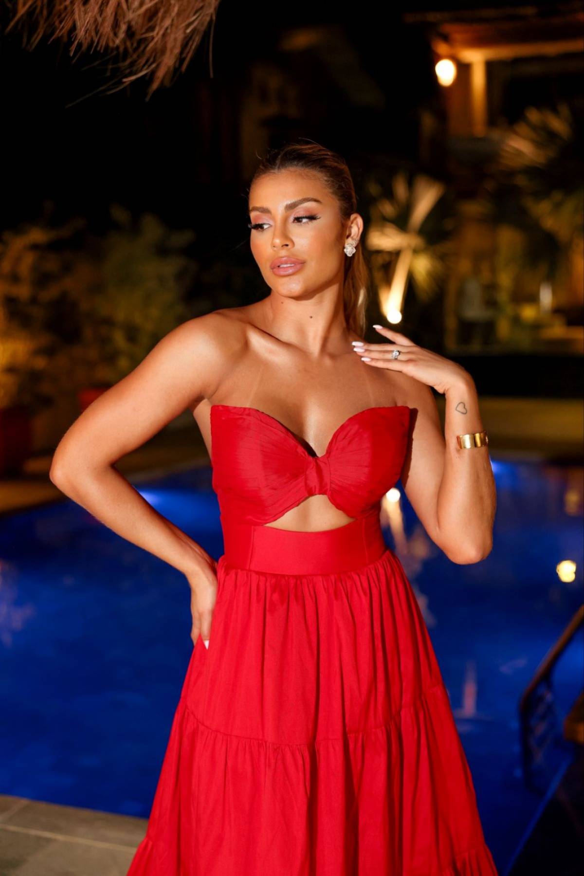 Vestido longo, alfaiataria, tomara que caia, busto drapeado.