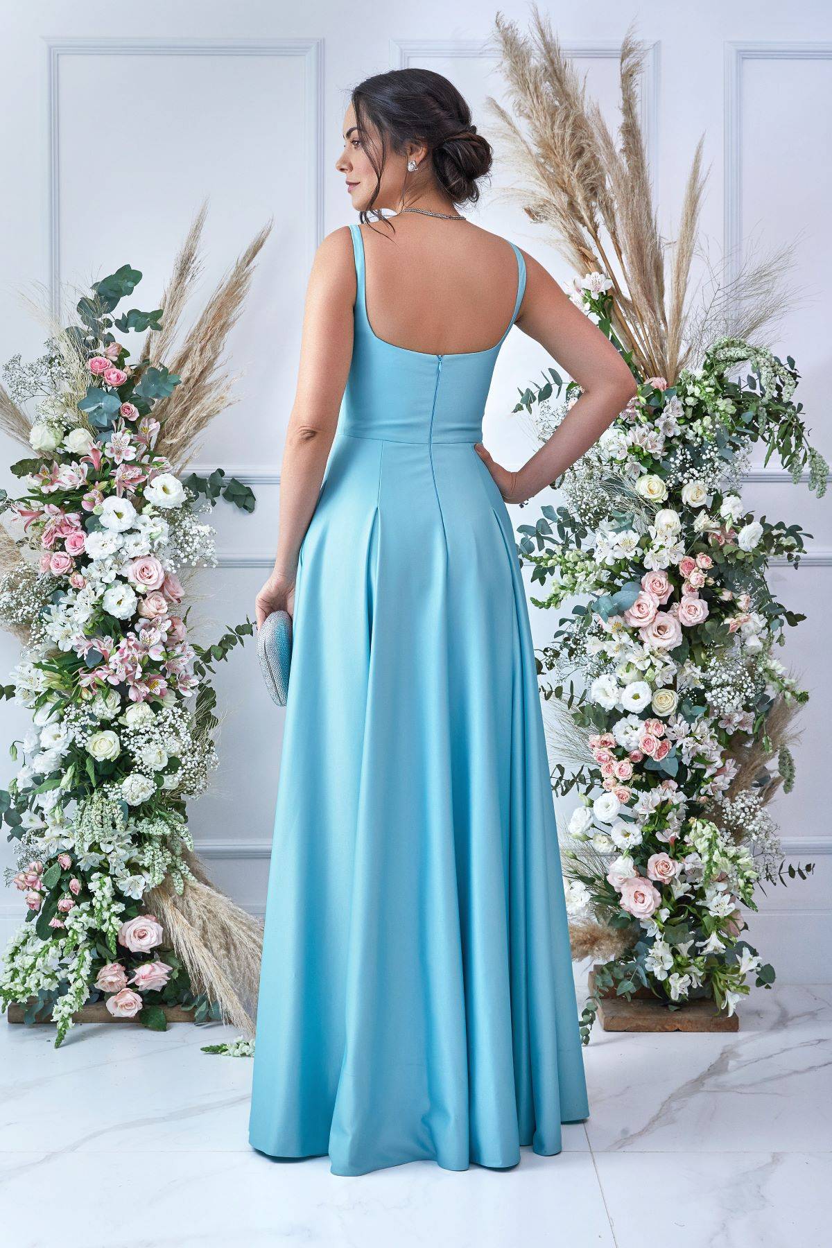 Descrição:Vestido longo, alfaiataria, liso, decote quadrado.