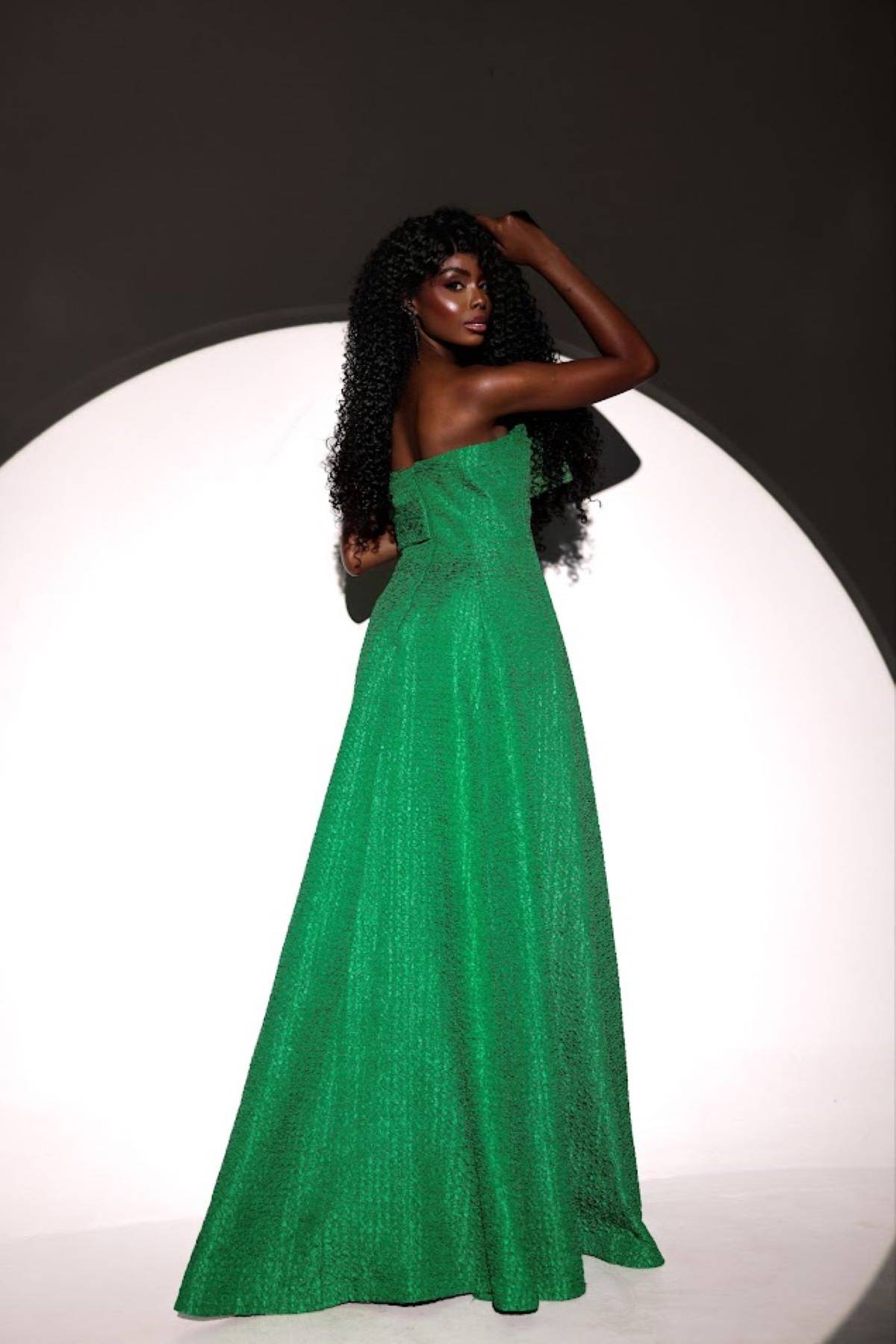 Descrição:Vestido longo, tomara que caia, laço no busto.