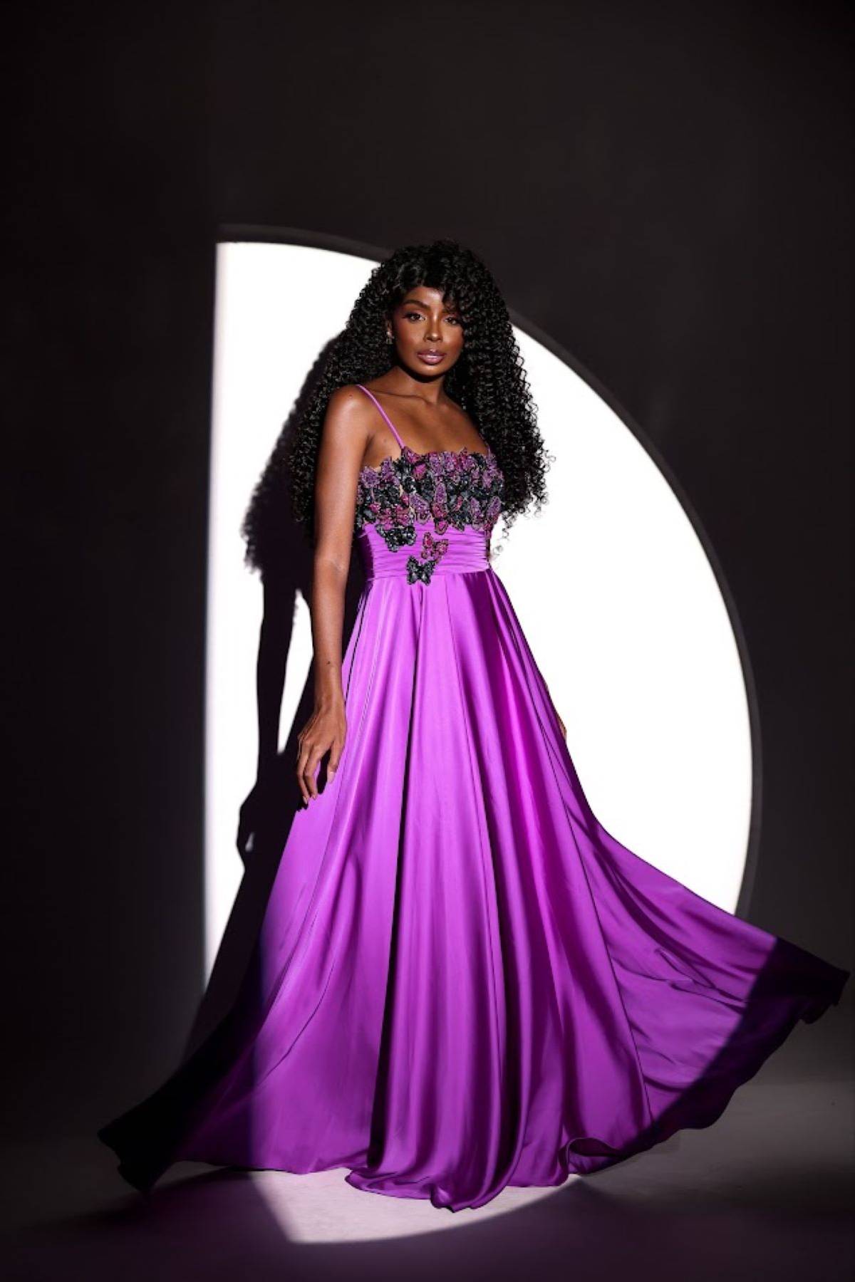 Descrição:Vestido longo, saia lisa, semi bordado.