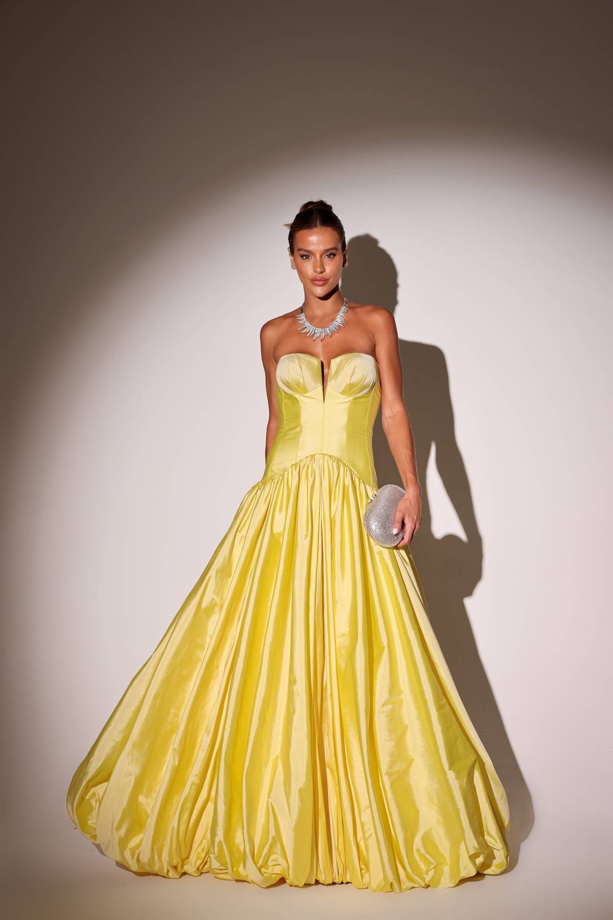 Descrição:Vestido zibeline, tomara que caia, amarelo manteiga candy, Balone.